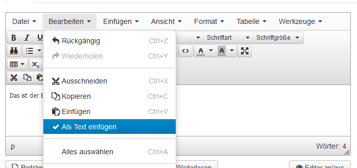 Wenn Sie Text aus dem Word oder anderen Programmen kopieren, wählen Sie Bearbeiten > Als Text einfügen.
