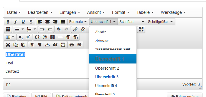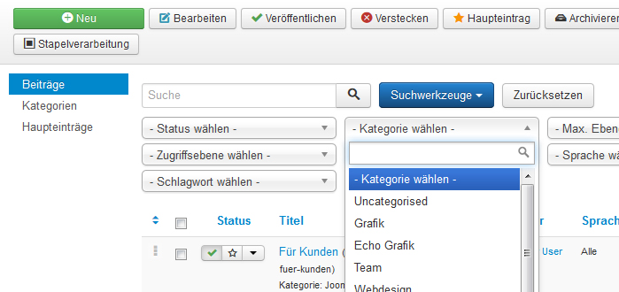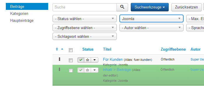 - - Beiträge erstellen und bearbeiten: Inhalt > Beiträge