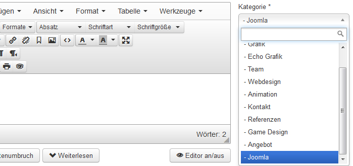 Um Ihre Beiträge zu ordnen, können Sie Kategorien erstellen. Wählen Sie im Beitrag rechts neben dem Editor-Fenster die Kategorie für den Beitrag aus.