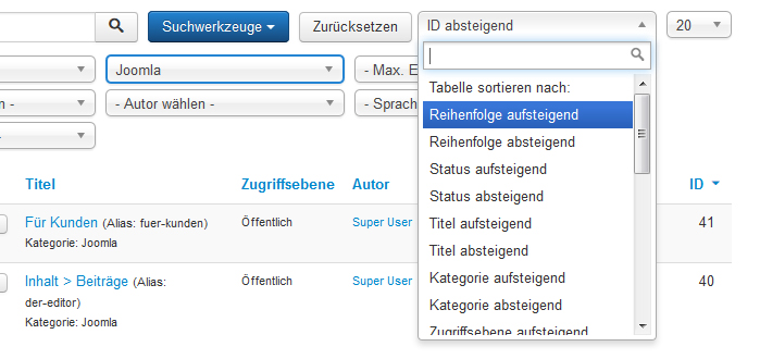 Um die Reihenfolge der Beiträge zu ändern, wählen Sie zuerst: Reihenfolge auf- oder absteigend.