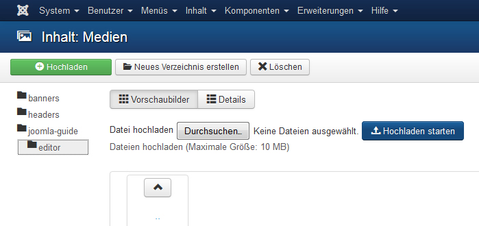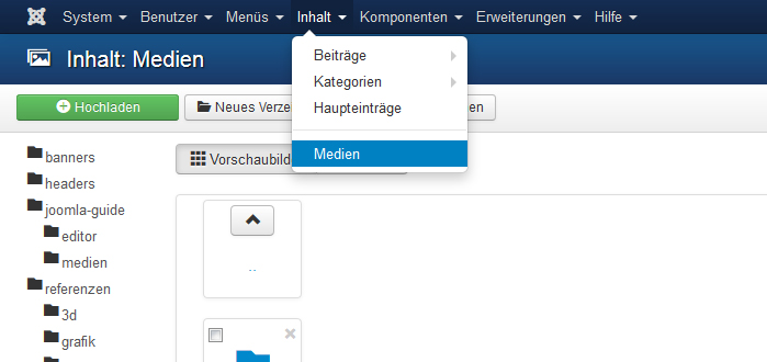 - - Bilder und PDF-Dateien hochladen: Inhalt > Medien